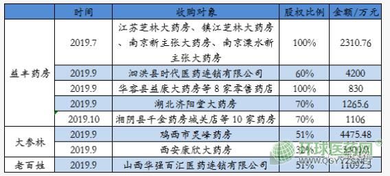 圖表3:四大藥房三季報披露的三季度收購情況