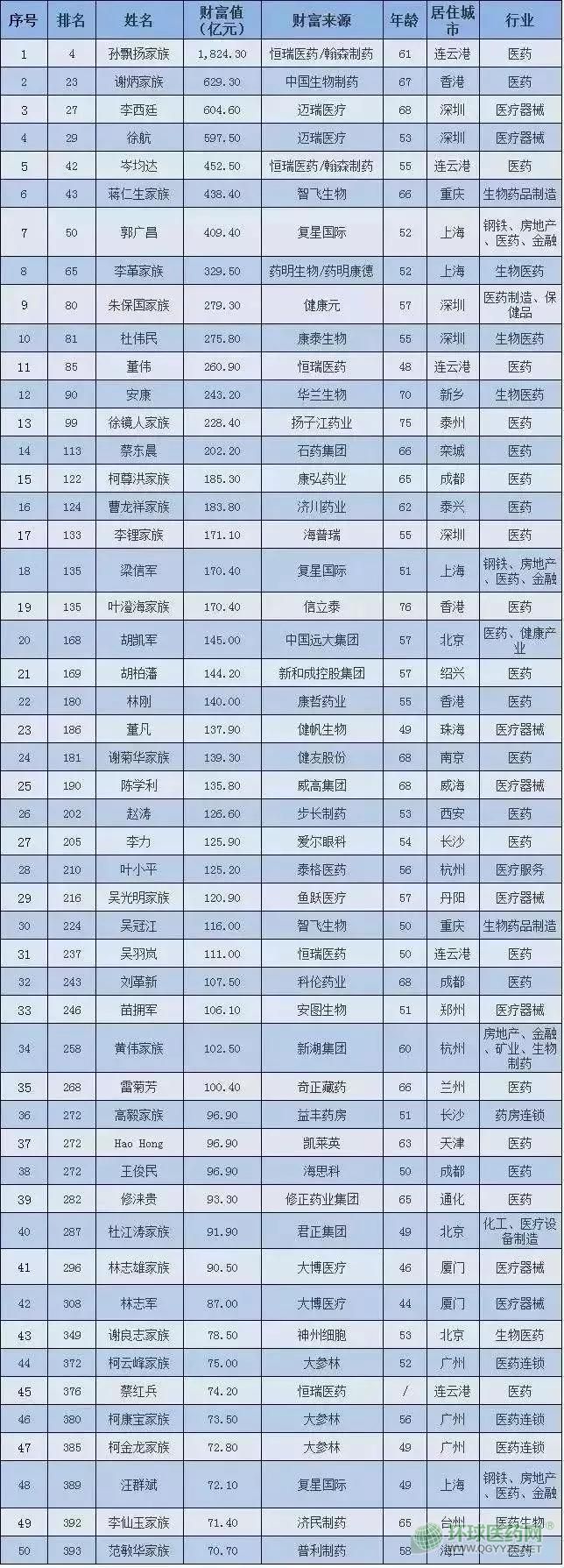 值得注意的是,在400位入圍的中國富豪中出現(xiàn)了許多醫(yī)械人的身影。其中,邁瑞醫(yī)療的李西廷位于總榜排名的27,在醫(yī)藥行業(yè)排名第三,醫(yī)療器械行業(yè)排名第一。