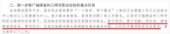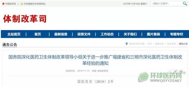 11月15日,國(guó)家衛(wèi)健委發(fā)布了《關(guān)于進(jìn)一步推廣福建省和三明市深化醫(yī)藥衛(wèi)生體制改革經(jīng)驗(yàn)的通知》(以下簡(jiǎn)稱“通知”)。
