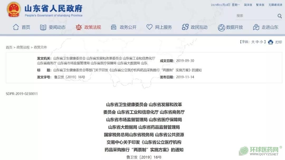 近日,山東省人民政府公布《山東省公立醫(yī)療機構藥品采購推行“兩票制”實施方案》(下稱《實施方案》)。
