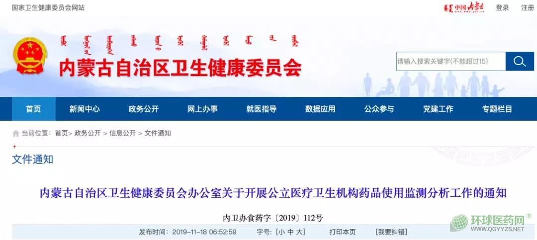 11月18日,內蒙古自治區(qū)衛(wèi)健委辦公室發(fā)布《關于開展公立醫(yī)療衛(wèi)生機構藥品使用監(jiān)測分析工作的通知》(以下簡稱通知》)。
