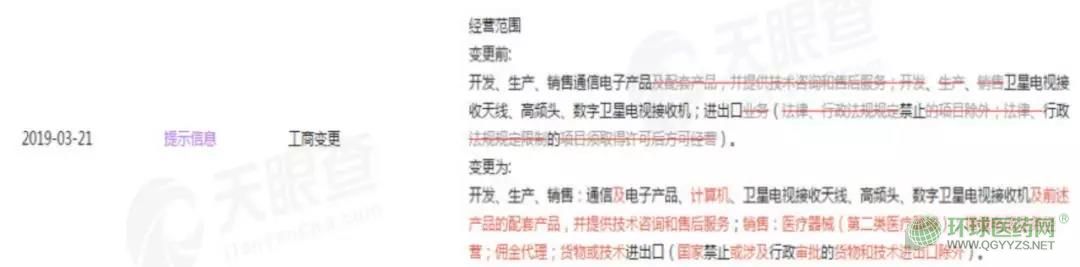 今年3月21日,華為變更公司經(jīng)營(yíng)范圍,新增醫(yī)療器械銷售等業(yè)務(wù)。