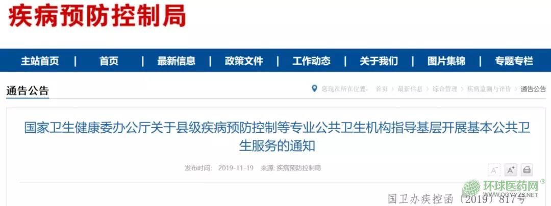 11月19日,國家衛(wèi)健委發(fā)布《關(guān)于縣級(jí)疾病預(yù)防控制等專業(yè)公共衛(wèi)生機(jī)構(gòu)指導(dǎo)基層開展基本公共衛(wèi)生服務(wù)的通知》(以下簡稱《通知》)。