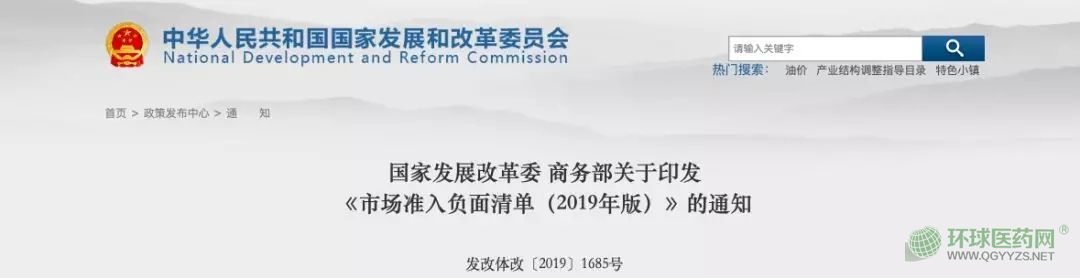 近日,國家發(fā)改委官網(wǎng)發(fā)布《國家發(fā)展改革委商務(wù)部關(guān)于印發(fā)<市場準(zhǔn)入負(fù)面清單(2019年版)>的通知》。