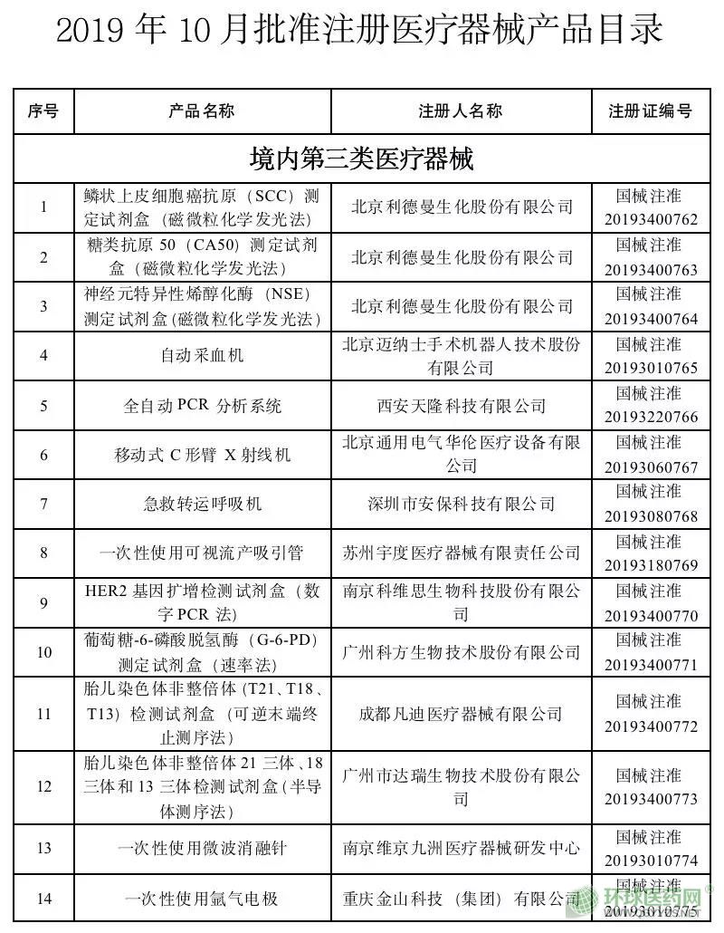 11月25日,國家藥監(jiān)局消息,發(fā)布了關(guān)于批準注冊43個醫(yī)療器械產(chǎn)品的公告(2019年第96號)。