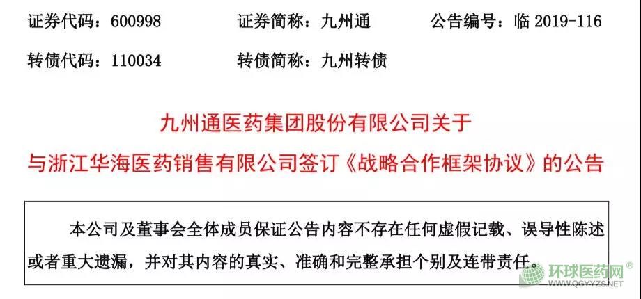 根據(jù)公告,基于九州通廣泛的零售市場資源、全面市場推廣的優(yōu)勢和華海藥業(yè)豐富的產(chǎn)品資源,雙方將于2019年11月開始進一步擴大合作,建立戰(zhàn)略合作關(guān)系,實現(xiàn)共贏目標。