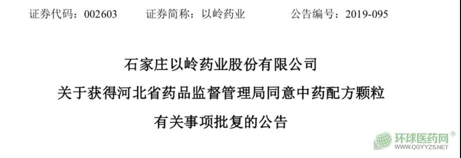 12月7日,以嶺藥業(yè)發(fā)布公告稱,于2019年12月5日收到河北省藥品監(jiān)督管理局《關(guān)于同意石家莊以嶺藥業(yè)股份有限公司中藥配方顆粒有關(guān)事項(xiàng)的批復(fù)》。