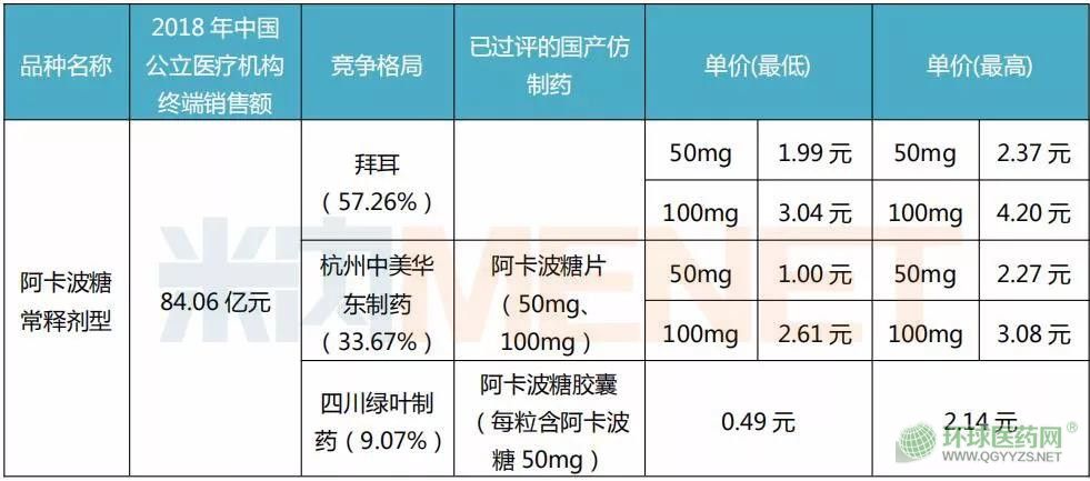 表2:阿卡波糖常釋劑型相關(guān)產(chǎn)品情況