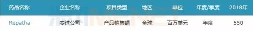 公告中提到,目前全球首個上市的PCSK9抑制劑為Amgen(美國安進(jìn)公司)開發(fā)的依洛尤單抗(Evolocumab,商品名Repatha),據(jù)米內(nèi)網(wǎng)數(shù)據(jù)顯示,2018年該產(chǎn)品全球銷售額為5.5億美元。
