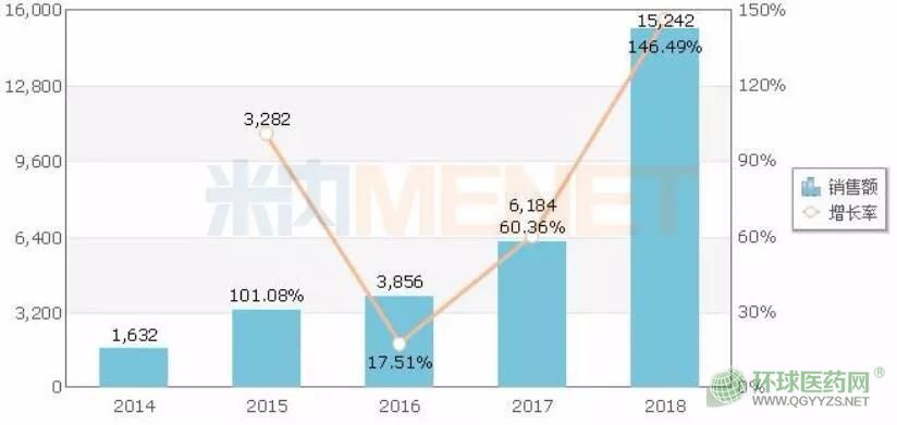 米內(nèi)網(wǎng)數(shù)據(jù)顯示,2018年泊沙康唑的全球銷售額超過7億美元。默沙東的泊沙康唑口服混懸液2013年獲批進入國內(nèi)市場,2018年在中國城市公立醫(yī)院、縣級公立醫(yī)院、城市社區(qū)中心及鄉(xiāng)鎮(zhèn)衛(wèi)生院(簡稱中國公立醫(yī)療機構(gòu))終端銷售額也突破1.5億元。2018年12月,默沙東的泊沙康唑腸溶片也順利獲批進入國內(nèi)市場,目前市場上的泊沙康唑并無相關(guān)的國內(nèi)仿制產(chǎn)品。