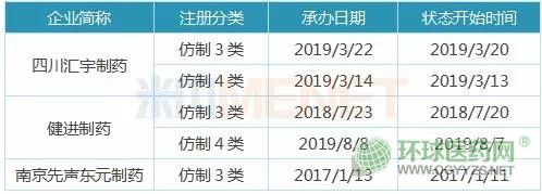 正大天晴的產(chǎn)品以首仿獲批生產(chǎn)并視同通過(guò)一致性評(píng)價(jià),此外四川匯宇制藥、健進(jìn)制藥、南京先聲東元制藥3家藥企的產(chǎn)品也以新注冊(cè)分類申報(bào)上市。南京先聲東元制藥的注射用鹽酸苯達(dá)莫司汀的上市申請(qǐng)于2017年1月13日獲得CDE承辦受理,正大天晴藥業(yè)的產(chǎn)品于2017年1月22日獲得CDE承辦受理,最終正大天晴率先突圍。