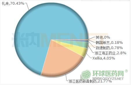 目前國內(nèi)市場有6家企業(yè)擁有注射用鹽酸萬古霉素生產(chǎn)批文,其中3家為國內(nèi)藥企,包括麗珠集團(tuán)麗珠制藥廠、海正藥業(yè)及浙江醫(yī)藥新昌制藥廠,3家為進(jìn)口藥企,包括禮來、政德制藥及韓國希杰。從2018年中國公立醫(yī)療機(jī)構(gòu)終端注射用鹽酸萬古霉素競爭格局看,原研廠家禮來占據(jù)70%以上的市場份額。