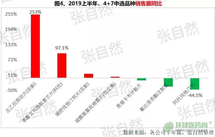 上市公司2019年上半年報顯示,左乙拉西坦片(京新)、草酸艾司西酞普蘭片(科倫)、瑞舒伐他汀鈣片(京新)、硫酸氫氯吡格雷片(信立泰)等中選品種的銷售額較上年同期明顯上升,尤其原銷售基數(shù)不高的左乙拉西坦片的銷售額高達上年同期的2.5倍之多。而阿托伐他汀鈣等雖銷售量上升明顯,但銷售額要趕超上年同期水平尚需時日,畢竟到半年報截止時的6月30日才銷售了3個月。