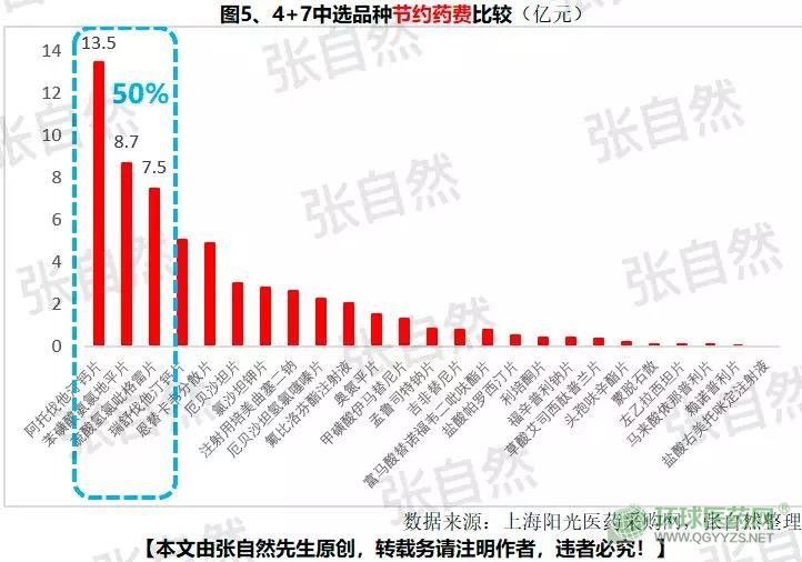 25個中選品種在4+7招標(biāo)之前的市場規(guī)模約為78億元,招標(biāo)后則降為19億元左右,從而節(jié)約藥費支出約59億元,其中,阿托伐他汀鈣片、苯磺酸氨氯地平片、硫酸氫氯吡格雷片等3個品種節(jié)約的藥費支出即占總節(jié)約費用的近50%,分別為13.5億元、8.7億元和7.5億元。