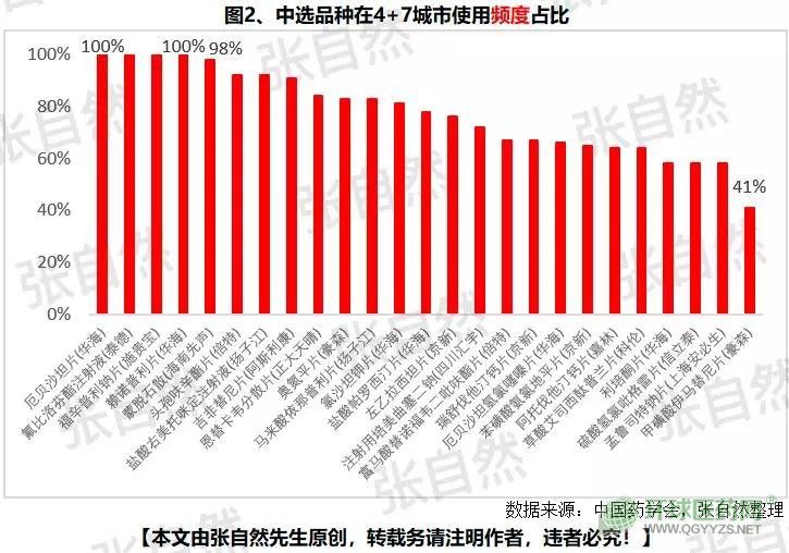 由于中選品種的低價效應(yīng)并配合廣泛宣傳,中選品種在4+7城市的使用頻度顯著提高,厄貝沙坦片(華海)、氟比洛芬酯注射液(泰德))、福辛普利鈉片(施貴寶)、賴諾普利片(華海) )等中選品種的使用頻度甚至迅速達到了100%,實現(xiàn)了對原研藥的充分替代。
