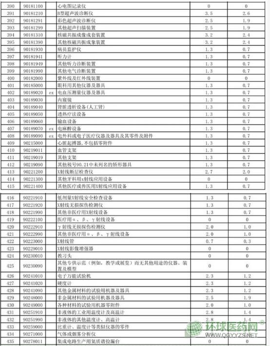 2020年7月1日起實施最慧國稅率第五步降稅的醫(yī)療器械
