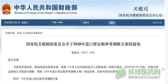 2020年1月1日起,具體有哪些器械有調整,國務院關稅稅則委員會在官網上發(fā)布了《2020年進口暫定稅率等調整方案》通知。