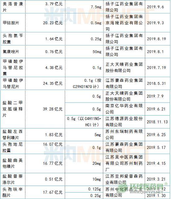 江蘇省已通過仿制藥質(zhì)量和療效一致性評(píng)價(jià)品種清單