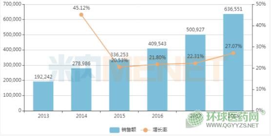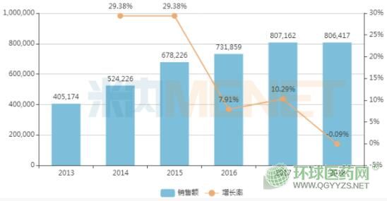 中國(guó)公立醫(yī)療機(jī)構(gòu)終端恩替卡韋片劑銷售情況(單位:萬元)
