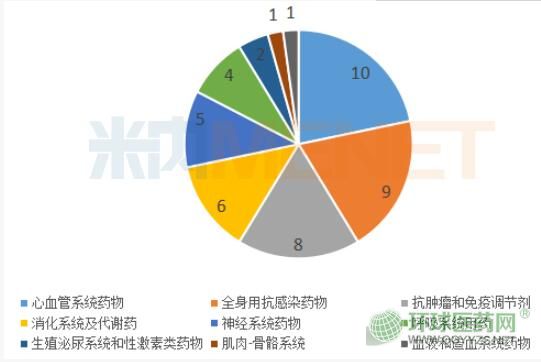 從過評(píng)品種的大類來看,涉及心血管系統(tǒng)藥物、全身用抗感染藥物、抗腫瘤和免疫調(diào)節(jié)劑、消化系統(tǒng)及代謝藥、神經(jīng)系統(tǒng)藥物、呼吸系統(tǒng)用藥等9個(gè)大類。其中,心血管系統(tǒng)藥物、全身用抗感染藥物、抗腫瘤和免疫調(diào)節(jié)劑均是熱門大類。