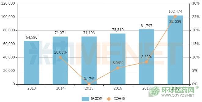 米內(nèi)網(wǎng)數(shù)據(jù)顯示,2018年中國城市公立醫(yī)院、縣級公立醫(yī)院、城市社區(qū)中心及鄉(xiāng)鎮(zhèn)衛(wèi)生院(簡稱中國公立醫(yī)療機(jī)構(gòu))終端塞來昔布膠囊劑銷售額突破10億元,同比增長25.28%。