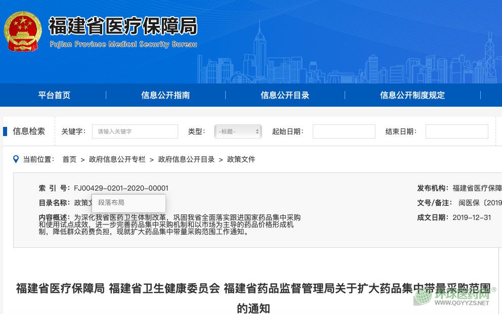 1月13日下午,福建省醫(yī)療保障局、福建省衛(wèi)生健康委員會、福建省藥品監(jiān)督管理局發(fā)布《關(guān)于擴大藥品集中帶量采購范圍的通知》(以下簡稱《通知》)。
