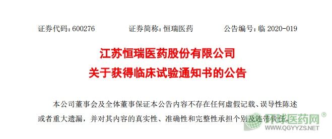 導(dǎo)讀:恒瑞創(chuàng)新藥SHR5126片開展臨床試驗,擬用于治療實體瘤患者近日,恒瑞醫(yī)藥收到國家藥品監(jiān)督管理局核準(zhǔn)簽發(fā)的《臨床試驗通知書》,批準(zhǔn)公司創(chuàng)新藥SHR5126片開展臨床試驗,擬用于治療實體瘤患者。