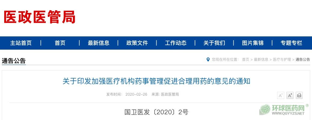 2月26日,國家衛(wèi)健委發(fā)布《關(guān)于印發(fā)加強醫(yī)療機構(gòu)藥事管理促進合理用藥的意見的通知》(以下簡稱《通知》)。