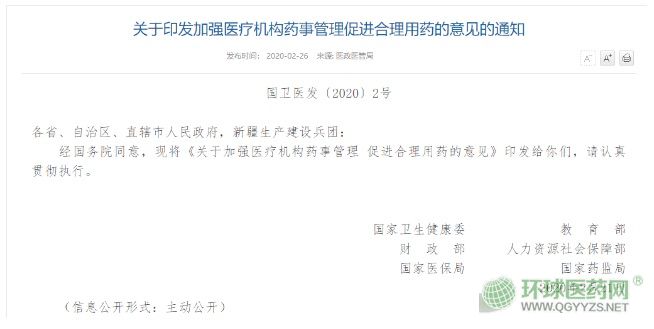 2月26日,國(guó)家衛(wèi)生健康委、教育部、財(cái)政部、人力資源社會(huì)保障部、國(guó)家醫(yī)保局、國(guó)家藥監(jiān)局等6部門(mén)聯(lián)合發(fā)布《關(guān)于加強(qiáng)醫(yī)療機(jī)構(gòu)藥事管理促進(jìn)合理用藥的意見(jiàn)》!兑庖(jiàn)》提出,推動(dòng)各級(jí)醫(yī)療機(jī)構(gòu)形成以基本藥物為主導(dǎo)的“1+X”用藥模式,“1”為國(guó)家基本藥物目錄;“X”為非基本藥物。同時(shí),強(qiáng)化醫(yī)療機(jī)構(gòu)藥事管理與藥物治療學(xué)委員會(huì)作用,成立國(guó)家級(jí)、省級(jí)、地市級(jí)藥事管理與藥物治療學(xué)委員會(huì)。