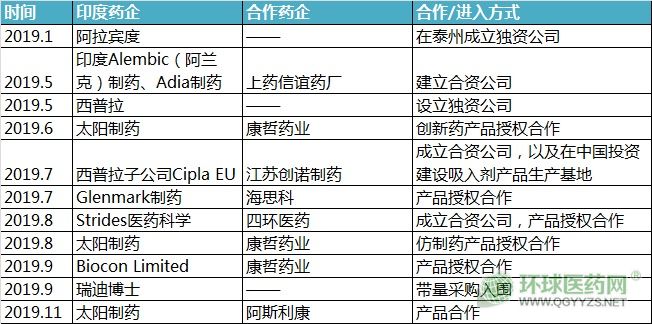 印度仿制藥企業(yè)不僅擁有成本低的優(yōu)勢,其在劑型創(chuàng)新等方面也有豐富的經(jīng)驗。通過將產(chǎn)品授權(quán)給本土企業(yè)可以同時發(fā)揮印度藥企的產(chǎn)品優(yōu)勢和本土藥企的銷售經(jīng)驗。不僅是珍寶島藥業(yè),在剛剛過去的2019年,多家印度藥企通過與本土藥企產(chǎn)品授權(quán)而加大布局力度。相關(guān)的授權(quán)產(chǎn)品不僅包括仿制藥產(chǎn)品,還有創(chuàng)新藥產(chǎn)品。
