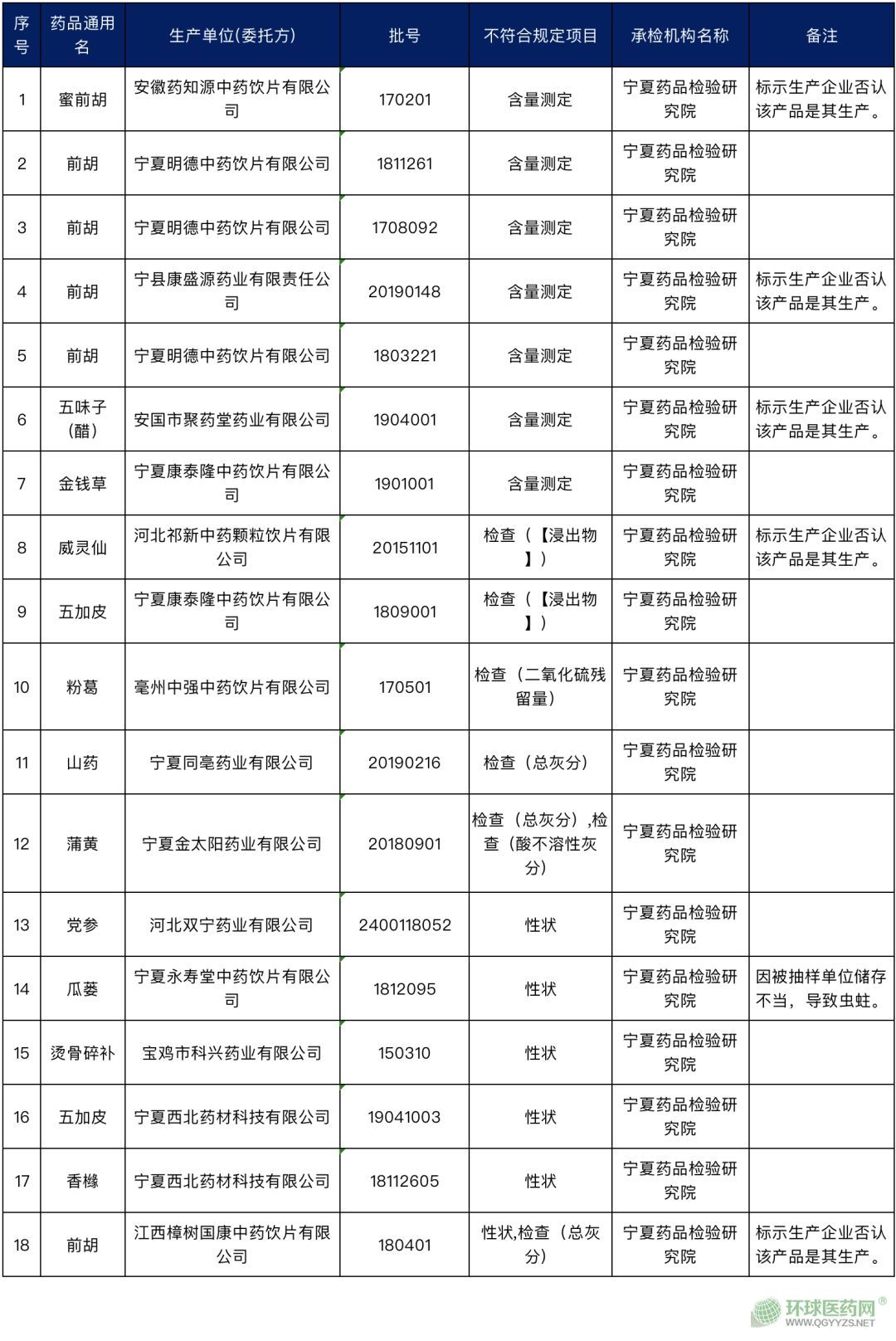 不合格批次列表