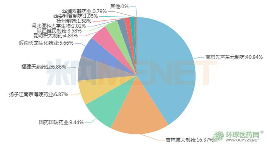 米內(nèi)網(wǎng)一鍵檢索數(shù)據(jù)顯示,早前擁有依達拉奉注射液生產(chǎn)批文的國內(nèi)企業(yè)已達21家,競爭相當激烈。在中國公立醫(yī)療機構(gòu)終端,南京先聲東元制藥、吉林博大制藥排在一、二位,2018年的市場份額為40.94%、16.37%。