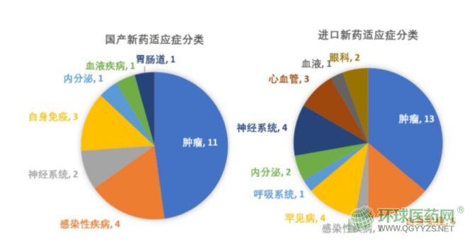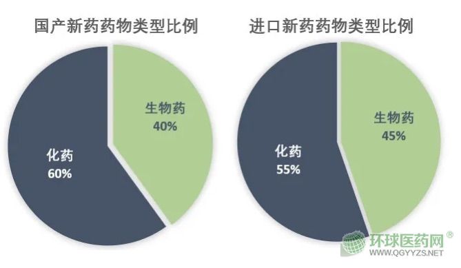 圖1 國產(左)和進口(右)新藥藥品類型比例