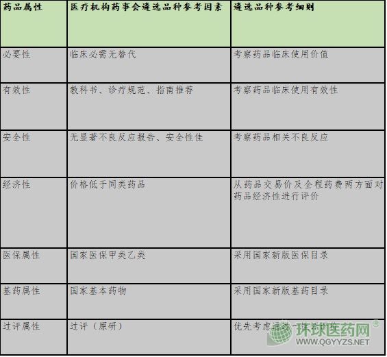 而在醫(yī)療機(jī)構(gòu)這一層面,藥事會(huì)的作用主要是就各科室存在的共性問題進(jìn)行集中研究,督促執(zhí)行部門強(qiáng)化臨床規(guī)范、合理用藥。筆者經(jīng)過前期調(diào)研了解,綜合各種業(yè)內(nèi)材料,大體梳理了醫(yī)療機(jī)構(gòu)在遴選藥品時(shí),基本上會(huì)參考的一些相關(guān)因素,如下: