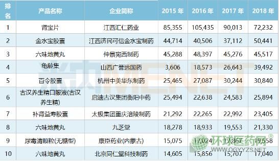 米內網數(shù)據(jù)顯示,在中國城市零售藥店終端中成藥市場,匯仁藥業(yè)的腎寶片一直占據(jù)了壯腰健腎品牌冠軍寶座,其中在2016年更達到了10.5億元的銷售高峰,隨后出現(xiàn)了下滑的趨勢,2018年僅為7.2億元。
