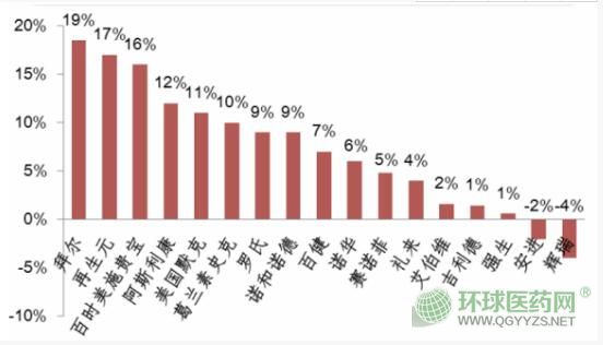 其中,增速低于平均增速一個百分以上的有賽諾菲(+5%),禮來(+4%),艾伯維(+2%),吉利德(+1%);出現(xiàn)下滑的則有安進(jìn)(-25)和輝瑞(-4%)兩家。增速相對乏力的藥企大多則是由于核心品種增速放緩或者專利過期所致。其中,輝瑞則是由于13價肺炎疫苗等大品種增長乏力,帕博西尼獨(dú)挑大梁但難以挽回下滑趨勢。公司做出戰(zhàn)略調(diào)整,剝離非核心資產(chǎn),“新輝瑞”將在未來的幾年很大程度降低核心品種“專利過期”的風(fēng)險;安進(jìn)則是由于大品種專利過期導(dǎo)致公司銷售額負(fù)增長,但從公司研發(fā)管線來看,公司中長期重點(diǎn)布局CD3雙抗,或成為該領(lǐng)域領(lǐng)導(dǎo)者。此外,還如艾伯維,增速放緩至2%則由于企業(yè)核心品種也是全球藥王阿達(dá)木單抗已專利過期出現(xiàn)銷售下滑所致。