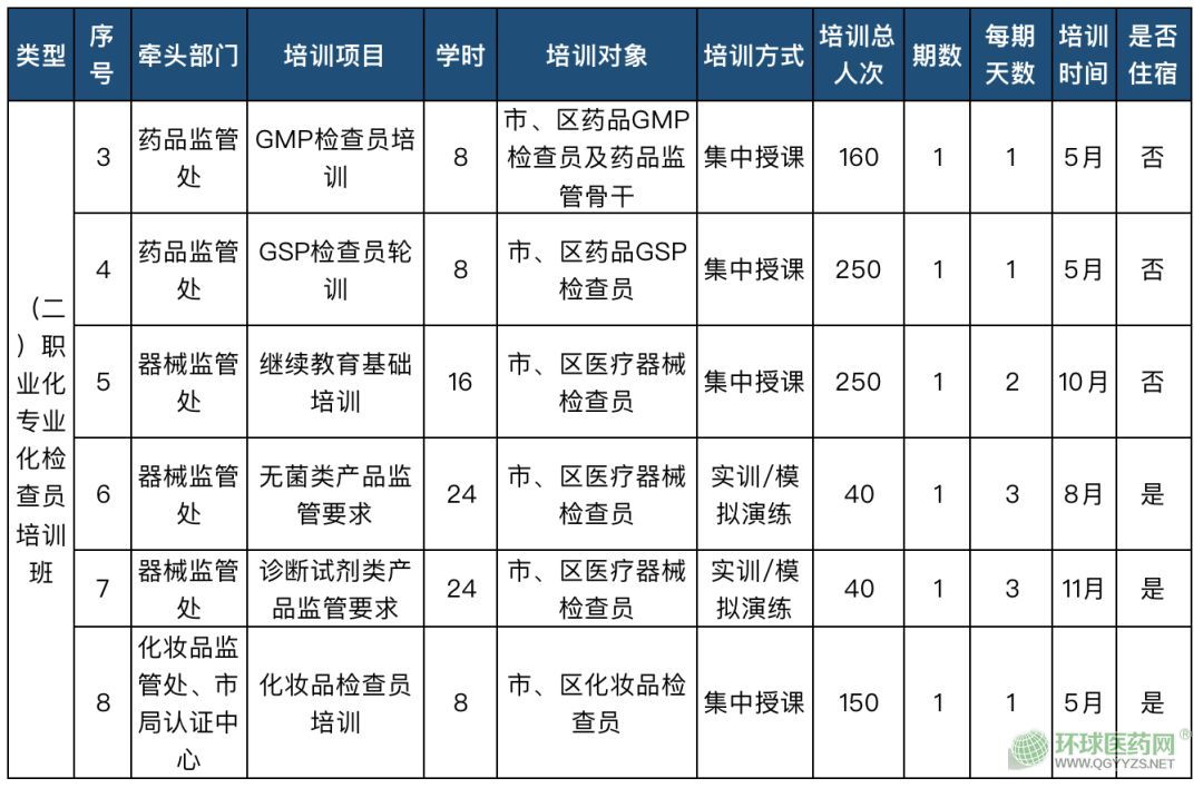 全年計(jì)劃開展藥品GMP檢查員培訓(xùn)班、藥品GSP檢查員輪訓(xùn)班、醫(yī)療器械檢查員培訓(xùn)班、化妝品檢查員培訓(xùn)班共6個(gè)項(xiàng)目。