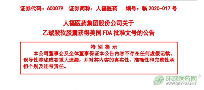 人福醫(yī)藥發(fā)布公告稱,控股子公司PuraCap Pharmaceutical LLC(以下簡稱“美國普克”,人福醫(yī)藥持有其72%的股權(quán))于近日收到美國食品藥品監(jiān)督管理局(FDA)關(guān)于乙琥胺軟膠囊的批準(zhǔn)文號。