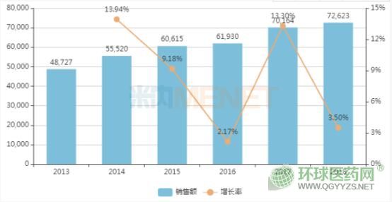近年中國公立醫(yī)療機(jī)構(gòu)終端鋁碳酸鎂片劑銷售情況(單位:萬元)