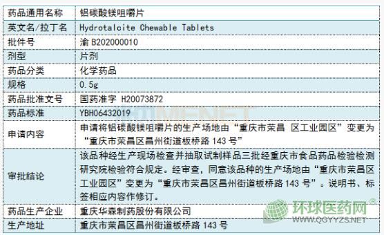 日前,華森制藥發(fā)布公告稱,公司近日收到重慶市藥監(jiān)局簽發(fā)的關(guān)于鋁碳酸鎂咀嚼片的藥品補(bǔ)充申請(qǐng)注冊(cè)批件,將該產(chǎn)品生產(chǎn)場(chǎng)地變更。資料顯示,華森制藥的鋁碳酸鎂咀嚼片是首家通過一致性評(píng)價(jià),2020年1月在第二批國家藥品集中采購中成功中標(biāo)。