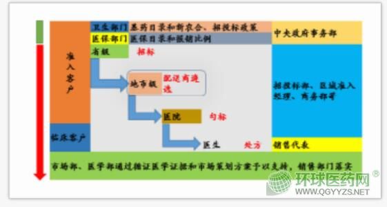 為了實(shí)現(xiàn)自己產(chǎn)品最終的銷售利益最大化,企業(yè)一般設(shè)置不同的部門對(duì)這兩類客戶群體實(shí)行不同的市場(chǎng)推廣策略,最終推動(dòng)自身產(chǎn)品的銷售最大化。如負(fù)責(zé)招、投標(biāo)及產(chǎn)品報(bào)銷的基本是政府事務(wù)部、政策研究部或者市場(chǎng)準(zhǔn)入部;負(fù)責(zé)產(chǎn)品臨床推廣的是銷售部門,包括銷售代表和相應(yīng)的支持部門。