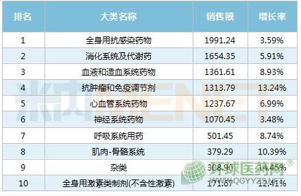 2018年中國公立醫(yī)療機構(gòu)終端化學(xué)藥藥品大類銷售情況(單位:億元)