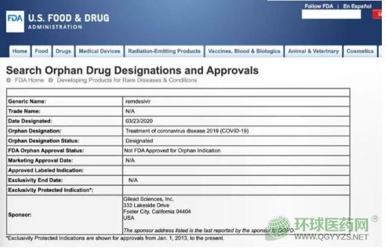北京時(shí)間3月24日早4:30(美東時(shí)間23日4:30pm),美國(guó)食品和藥品管理局(FDA)發(fā)布消息:批準(zhǔn)美國(guó)Gilead科學(xué)公司的Remdesivir(瑞德西韋)孤兒藥認(rèn)證(OrphanDrugDesignations)。