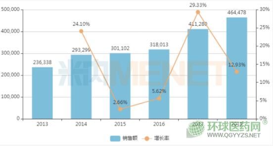 圖1:中國公立醫(yī)療機構(gòu)終端艾司奧美拉唑銷售情況(單位:萬元)
