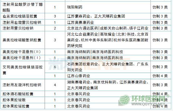 表3:正在審評的治療消化性潰瘍藥一致性評價申報情況