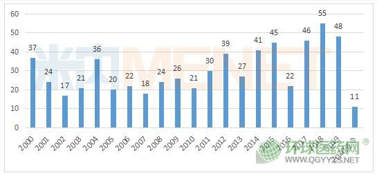 圖1:2000年至今FDA批準(zhǔn)的新藥數(shù)