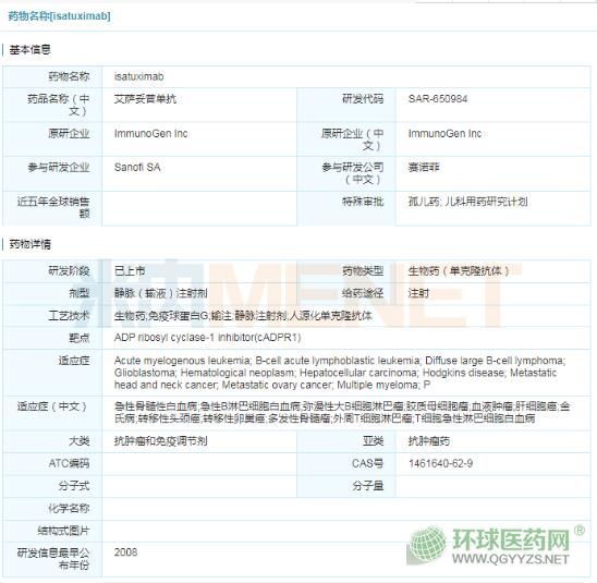 2020年3月2日,美國FDA宣布,批準(zhǔn)賽諾菲開發(fā)的新藥Sarclisa(isatuximab)與泊馬度胺、地塞米松聯(lián)合,用于治療之前至少接受過兩種療法(包括來那度胺和蛋白酶體抑制劑)的成人多發(fā)性骨髓瘤(MM)患者。Sarclisa早前已獲得美國FDA和歐盟EMA認(rèn)可的孤兒藥資格。