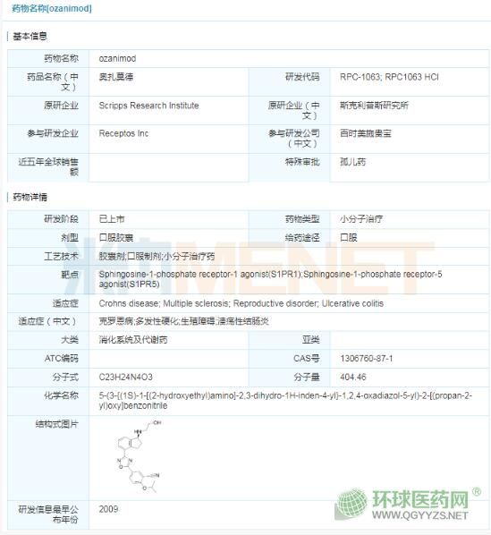 2020年3月25日,美國FDA批準(zhǔn)百時美施貴寶開發(fā)的新藥Zeposia(ozanimod)上市,用于治療成人復(fù)發(fā)型多發(fā)性硬化(RMS),包括臨床孤立綜合征(CIS),復(fù)發(fā)緩解型多發(fā)性硬化(RRMS)和繼發(fā)進展多發(fā)性硬化(SPMS)。Zeposia是一種一日一次的口服藥物,是目前唯一一款不需要患者進行基因檢測,也不需要首次用藥后按照說明進行健康監(jiān)測的鞘氨醇-1-磷酸(S1P)受體調(diào)節(jié)劑。目前,Zeposia正在接受歐盟EMA審查,百時美施貴寶在本周已宣布,歐盟人用醫(yī)藥產(chǎn)品委員會(CHMP)就Zeposia已發(fā)布積極審查意見,Zeposia歐盟獲批在即。
