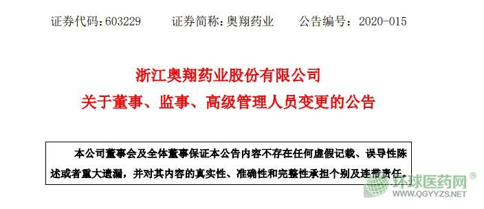 今日,奧翔藥業(yè)發(fā)布了關(guān)于董事、監(jiān)事、高級管理人員變更的公告。