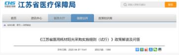 4月7日,江蘇醫(yī)保局發(fā)布《<江蘇省醫(yī)用耗材陽光采購實施細則(試行)>政策解讀及問答》(下稱《解讀》)顯示,高值耗材價格必須是全國最低價。